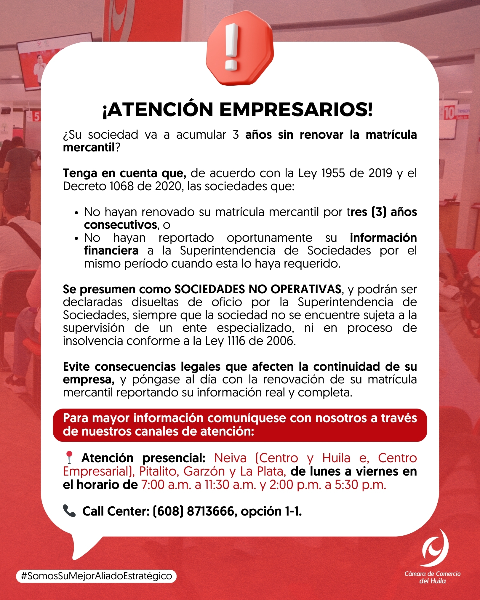 La renovación del registro mercantil, deberá realizarse anualmente, dentro de los tres primeros meses de cada año, es decir, hasta el 31 de marzo. Recuerde que, en el proceso de renovación de la matrícula mercantil, usted podrá actualizar la información de su establecimiento de comercio, tal como correo electrónico,